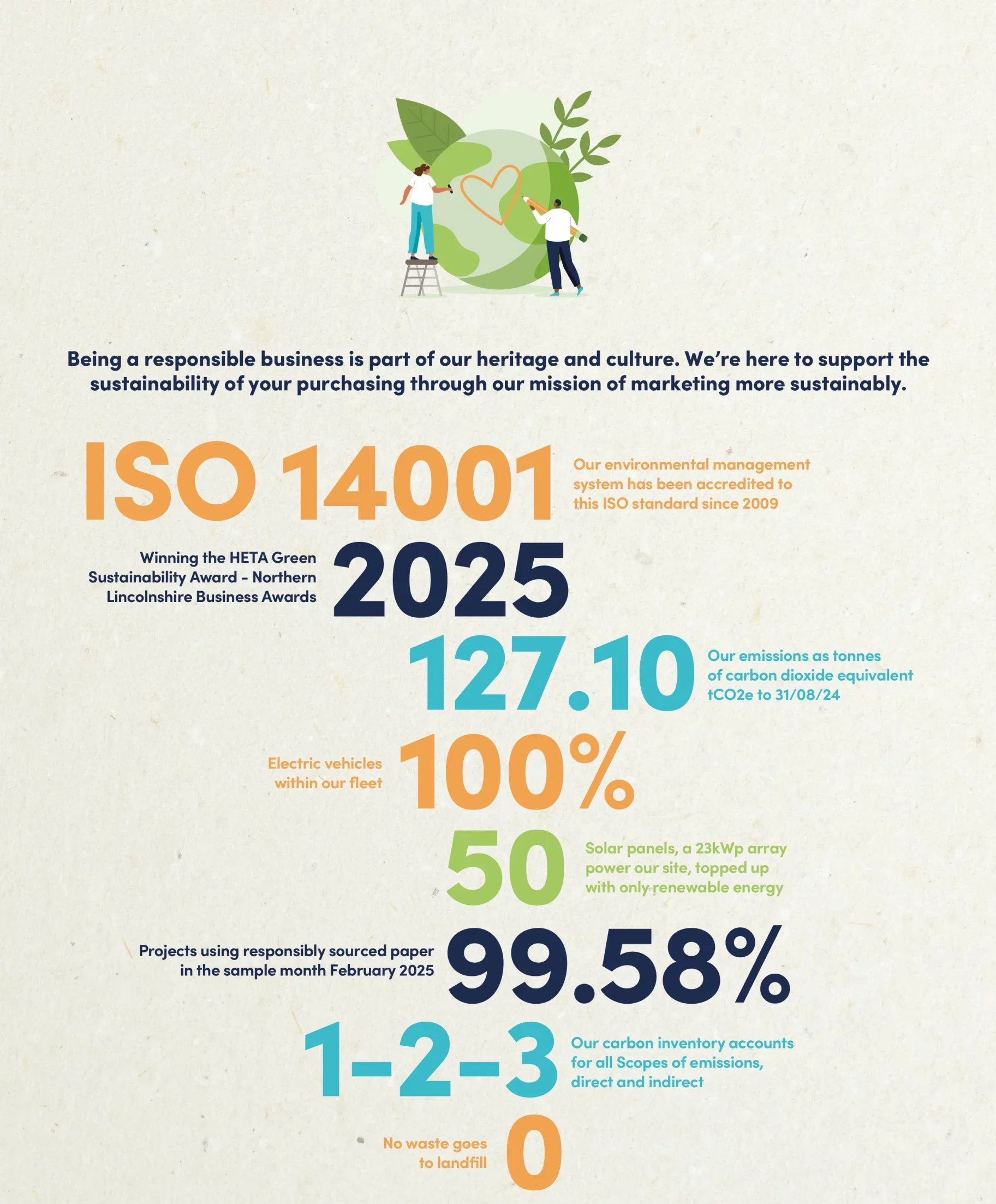 We like to share the sustainable story of paper and print, ensuring that you avoid greenwashing claims, whilst harnessing the power of this tactile means of communication, which is saved, shared and cuts through lots of digital messages. That’s why we’re a member of Two Sides, giving our clients access to resources and logos that reinforce the sustainability of print.