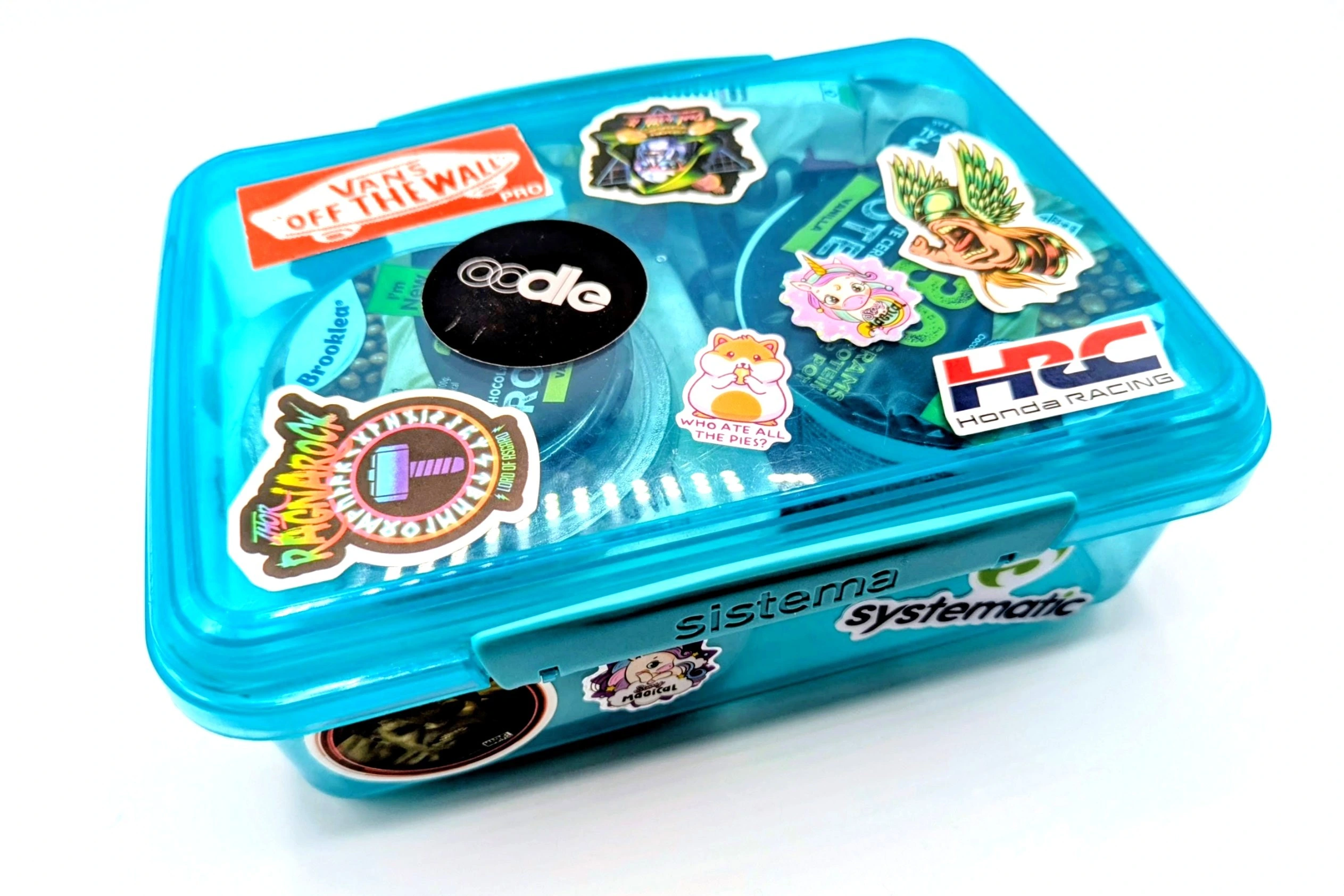 - Touchpoints everywhere – Armed with custom stickers your audience can have your brand in sight almost anywhere, notebooks, laptops, reusable bottles, or if you’re Steve at oodle, lunchboxes! Gifted with other brand products they create a chance for added personalisation. The visibility they give your brand extends beyond the recipient to those who also see those items. This simple visibility can spark curiosity and start conversations to introduce your business to new potential customers.
